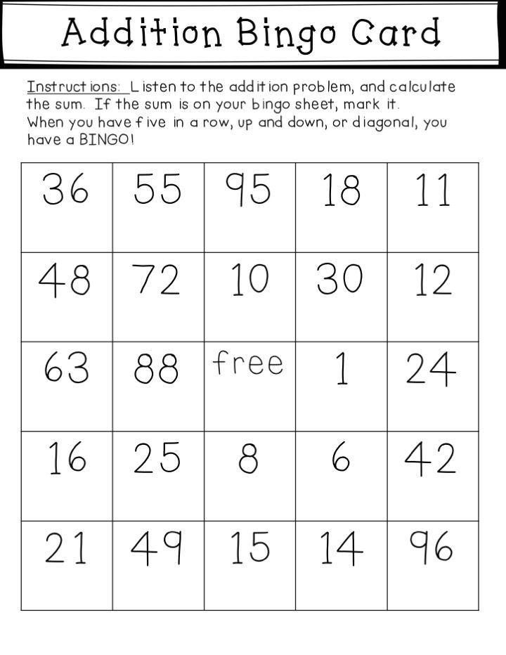 Addition and Subtraction Bingo - Numbers 0 - 100 Game